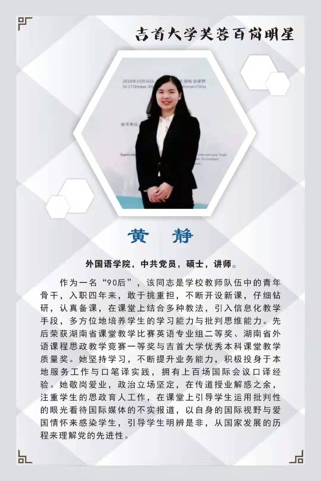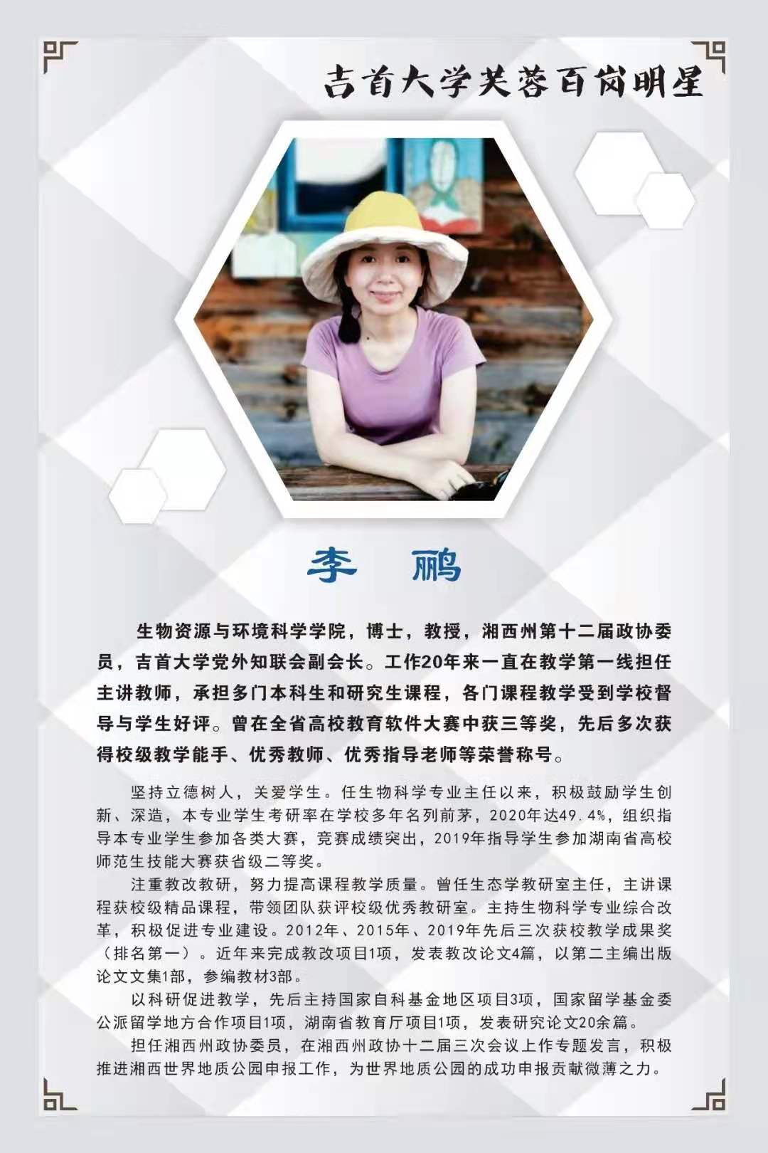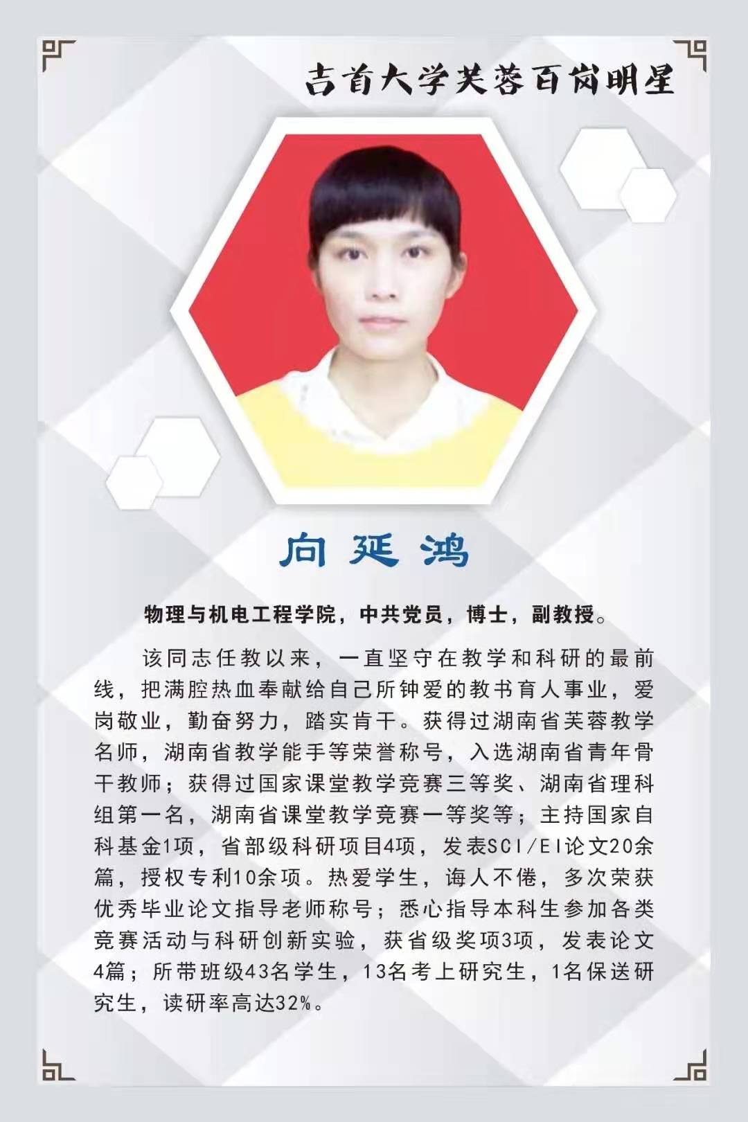 本期我们撷取10名“芙蓉百岗明星”的先进事迹与大家分享,希望受表彰的同志发扬成绩,再接再厉,开拓进取,为学校新发展作出新贡献。希望广大教职工向她们学习,积极投身学校改革和发展事业,为全面提高学校核心竞争力,构建和谐校园作出更大贡献。