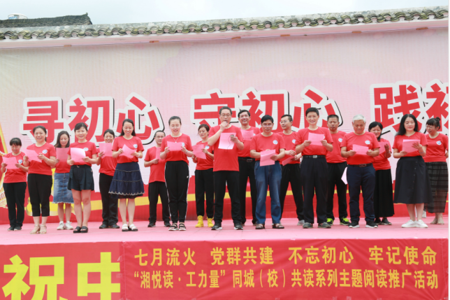 为落实校工会关于开展教职员工“同校共读”活动的通知精神,深化教职工主题阅读活动 ,7月22日上午7点半,图书馆分工会组织全馆职工分别从吉首校区和张家界校区乘车出发前往湘西州龙山县红色革命老区茨岩塘和土家古村落惹巴拉开展了“不忘初心、牢记使命” 党建主题读书月活动。图书馆党总支书记石绍根、馆长颜文斌、副馆长及工会主席王月娥、副馆长徐险峰等领导与近50位会员参加了此次活动。
